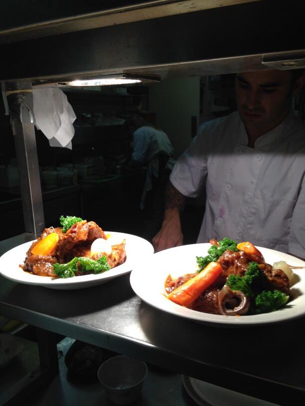 | Chef Aitor bringing his Braised Rabbit to the pass |